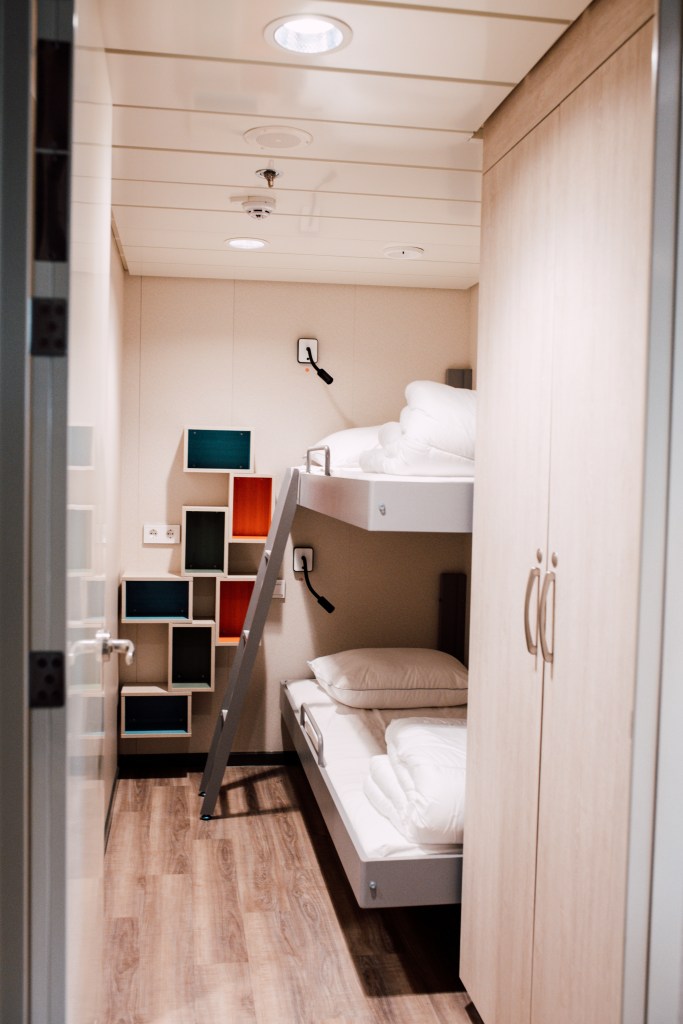 Onze familycabin zag er erg goed uit. Met een woonkamer, keukenblokje, een ‘kingsize’ slaapkamer, twee slaapkamertjes met stapelbedden en een mini badkamertje. We kunnen niet acherblijven: Ook wij gaan tiny! Het heeft nog een persoonlijke touch nodig. Zie je ons al gaan met onze verhuisdozen en prulletjes? 😉