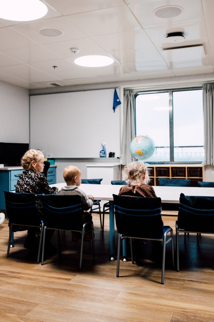 De kinderen in een van de klaslokalen