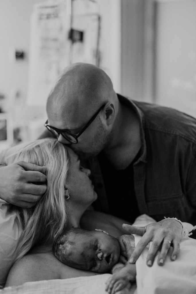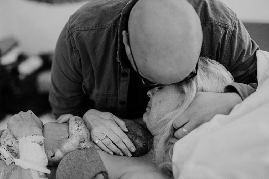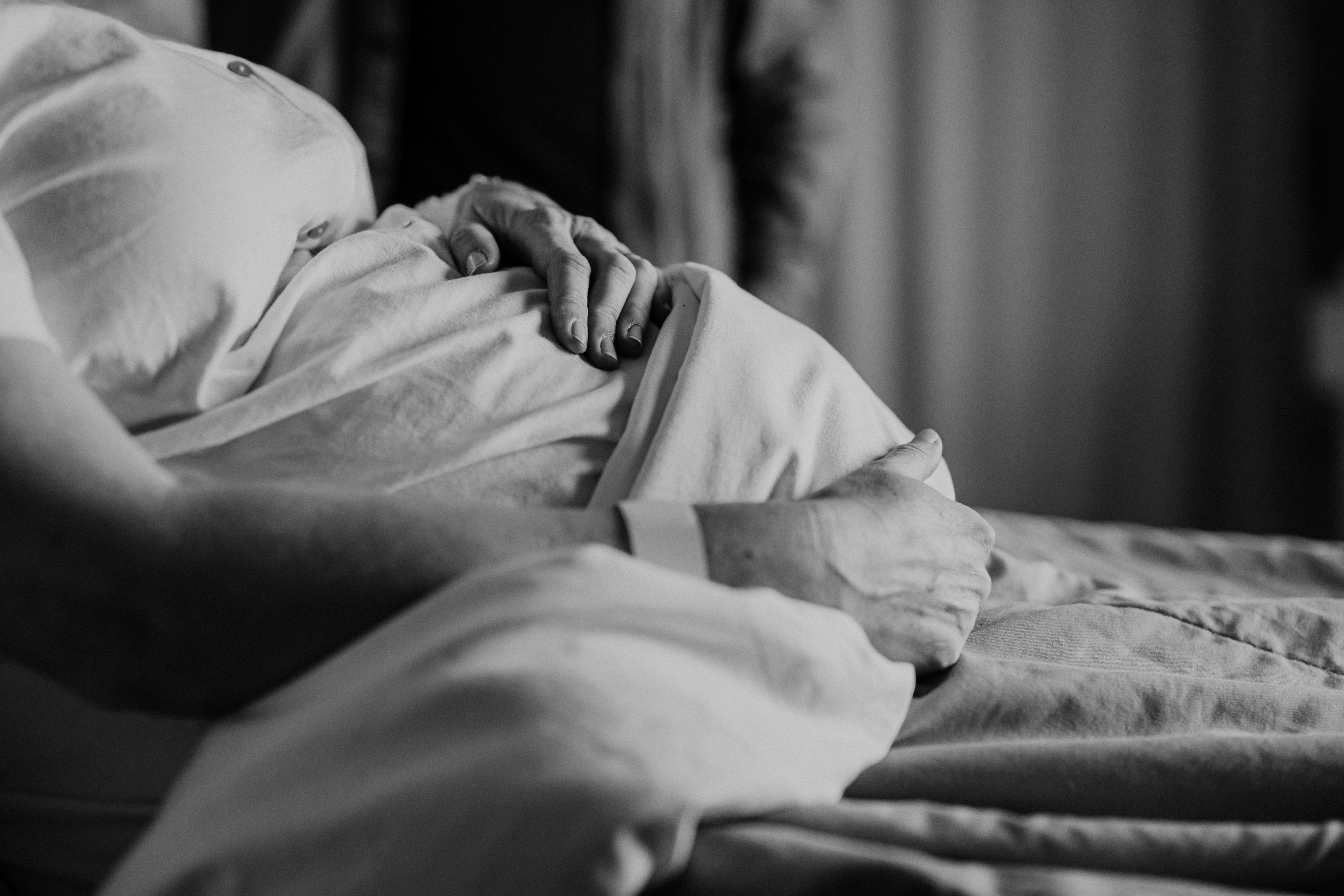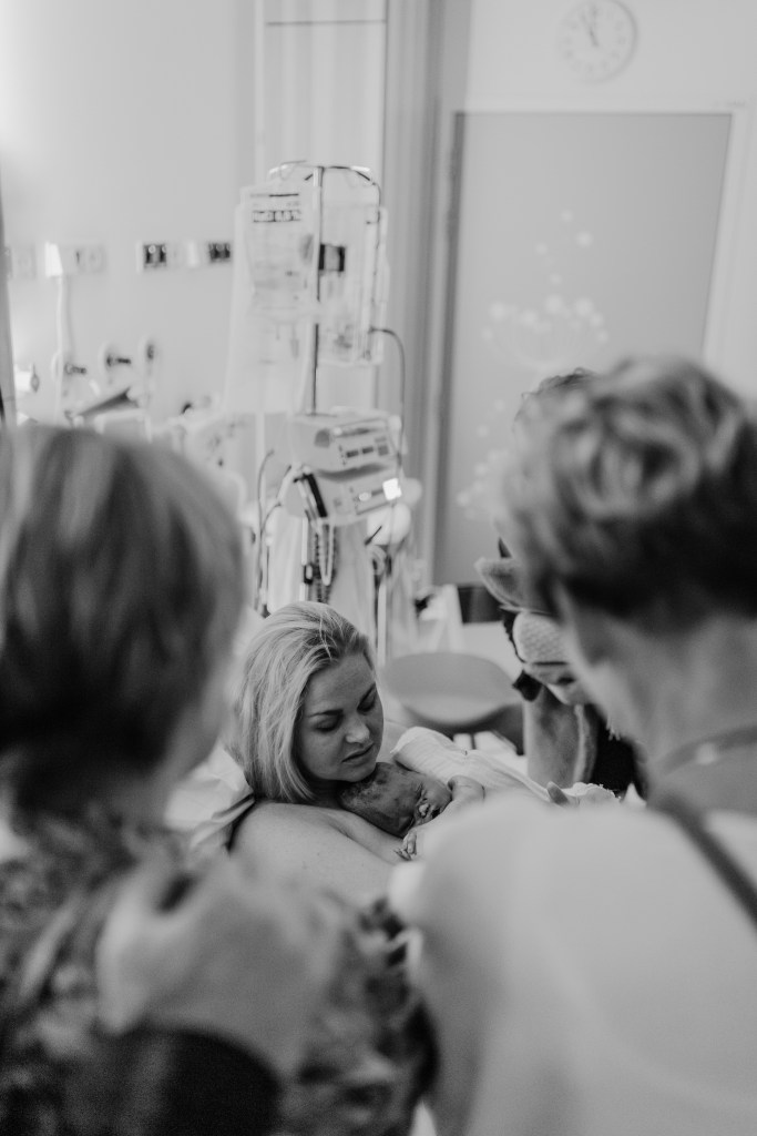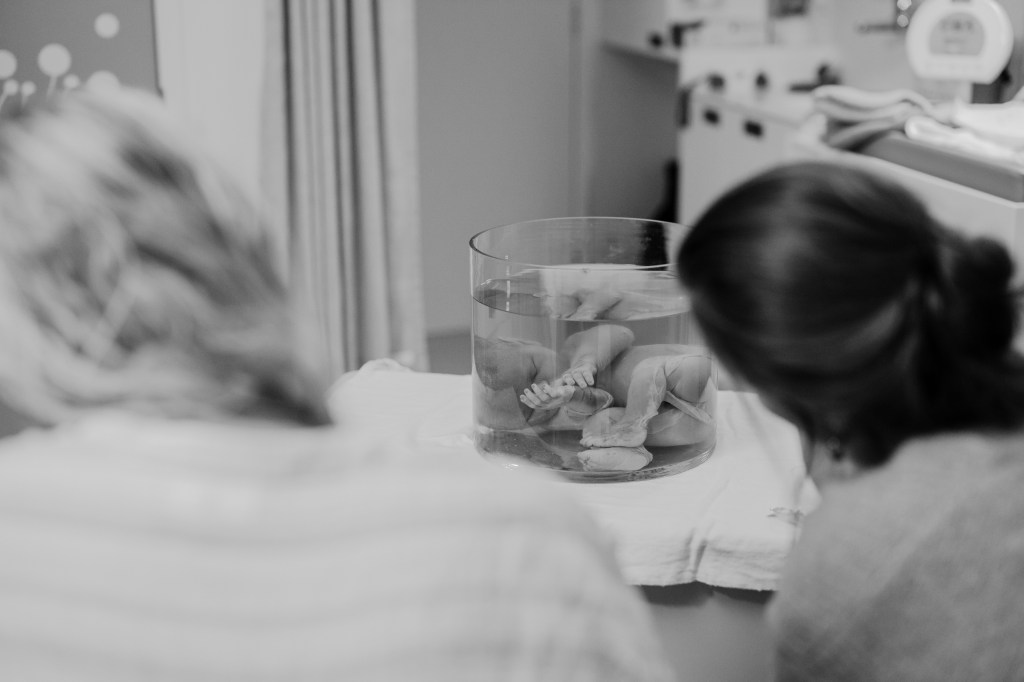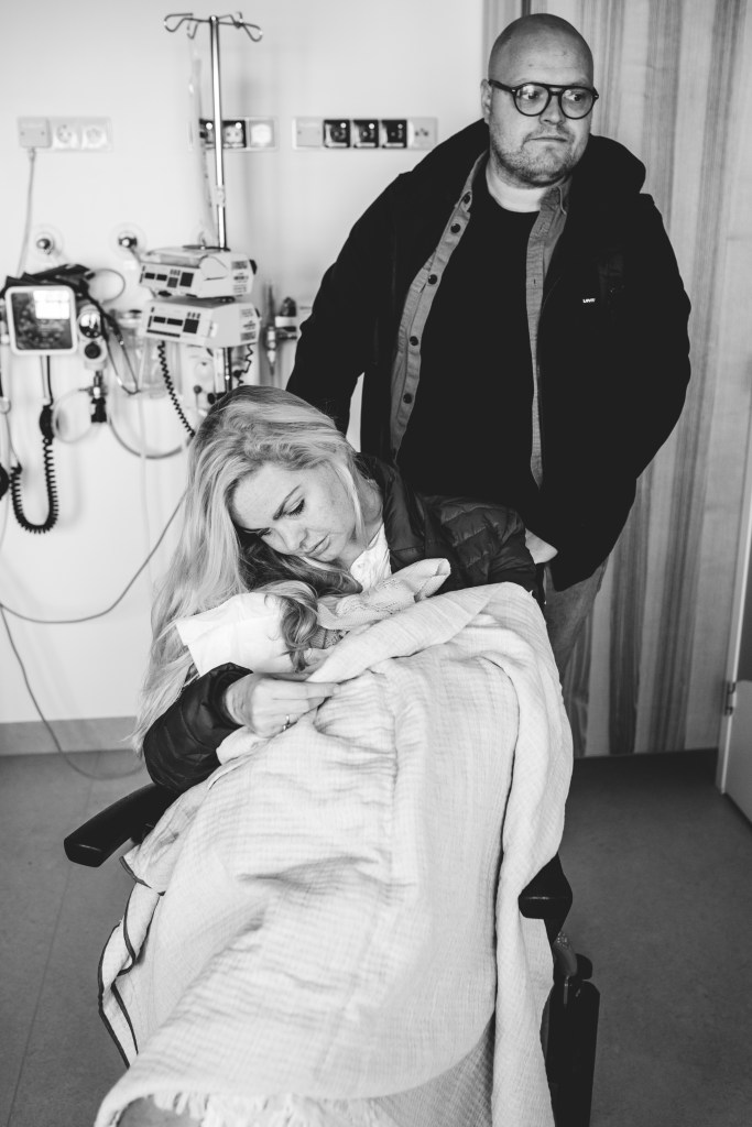 Amélie werd na een tijdje gewogen en er werden hand- en voetafdrukjes genomen met inkt. Onze ouders en Jacobine zouden langskomen om haar te zien, en dus wilde ik Amélie graag weer terug op mijn borst. Dat was naar.. Ze was opeens zo koud.. Maar dat was waar ze nu hoorde. Bij mij op de borst. Na het bezoek heeft Justin nog een tijd met Amélie op zijn borst gelegen.. Om echt te voelen.. Dit is het.. Het viel hem zwaar. Om haar lichaampje goed te houden maakten we gebruik van de watermethode. Ze werd in een grote bak met water gelegd waardoor ze echt meer de kleur terug kreeg die ze hoorde te hebben, we zagen nu zoo goed hoeveel ze op haar broertje en zusjes leek. Overduidelijk. Die nacht bleef ze zo bij ons op de kamer..